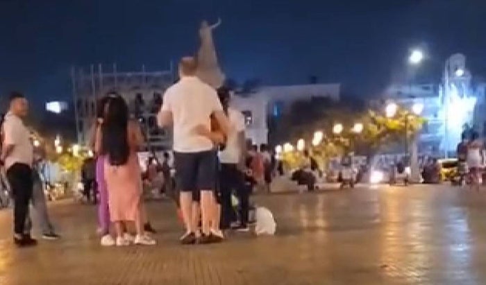 En un video quedó registrada la escena en la que dos mujeres y un extrajero se encontraban bailando y disfrutando del ambiente del Centro Histórico de Cartagena, exactamente en el Camellón de los Mártires.