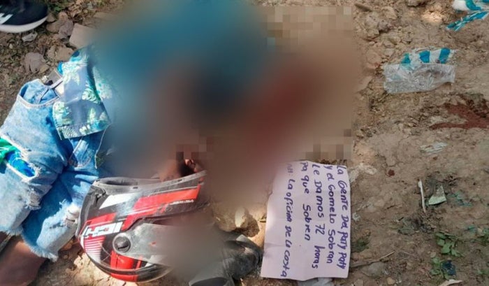Pero lo que ha llamado poderosamente la atención de este caso es un mensaje en la escena del crimen que dejaron los que ejecutaron a la víctima, escrito en un pedazo de cartulina y con marcador que decía: “La gente del ‘Paty Paty’ y ‘el Gomelo’ sobran. Le damos 72 horas para que sobren. Att: La Oficina de La Costa”.
