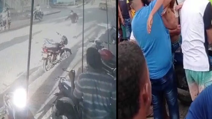 En imágenes captadas por una cámara de seguridad se observa el momento justo cuando un sicario acaba con la vida de un hombre, siendo las 5:40 de la tarde del lunes festivo 20 de junio en la capital de Bolívar.