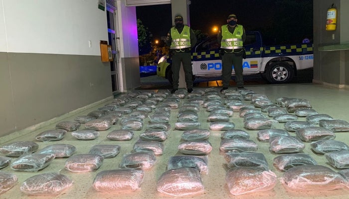 Informe la Policía que: "Se incautaron 118 empaques de sustancia alucinógena al parecer marihuana, con un peso aproximado de 800 gramos cada uno, equivalente a 94.400 gramos de sustancia, los cuales eran transportadas en un automóvil".