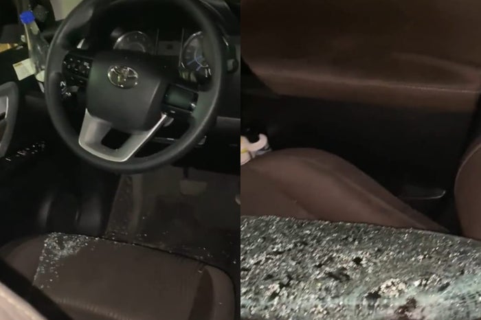 Ladrones parten ventana con el revólver para atracarlos dentro del carro
