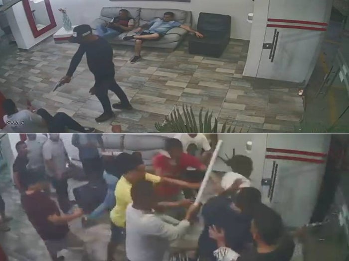 El acto delincuencial quedó grabado en varias cámaras de seguridad del lugar, donde se observa cuando el malhechor ingresa y encuentra a cuatro hombres sentados en la recepción, procediendo a quitarle los celulares, relojes y anillos; en un descuido dos de los huéspedes lograron salir corriendo.