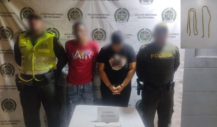 Indica la Policía Metropolitana de Cartagena que gracias a la rápida reacción de los uniformados y el oportuno aviso de los afectados, fue posible la recuperación de cuatro cadenas de oro y la captura de cinco personas por el delito de hurto a personas en el Centro Histórico.