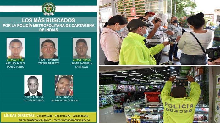 "En alrededores de estaciones del sistema de Transporte Masivo - Transcaribe, en tiendas y parques, y desde las redes sociales, la Policía Metropolitana de Cartagena de Indias solicita la colaboración de los ciudadanos, para localizar y capturar a los integrantes del Cartel de los delincuente "Más Buscados por hurto", en la capital de Bolívar". Expresa la institución.