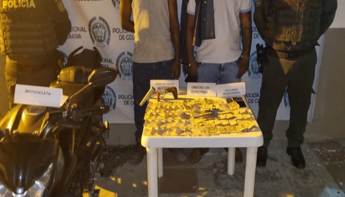 Los capturados fueron identificados como Elian De Jesús Alamiro Puello y César David Tarrá Marrugo, quienes fueron dejados a disposición de la Fiscalía General de la Nación por el delito de porte ilegal de arma de fuego y hurto calificado. Ambos están a la espera del proceso de su judicialización por parte de un juez de la República.