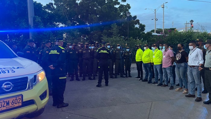 Detallaron que, "tres caravanas móviles están desplegadas en toda la ciudad, conformada por Policías del Grupo de Reacción Motorizada – GOES, personal del Escuadrón Móvil Antidisturbios – ESMAD, personal de las diferentes especialidades y del Modelo Nacional de Vigilancia Comunitaria por Cuadrantes, adscritos a la Policía Metropolitana de Cartagena".