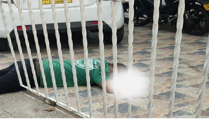 El cuerpo de la víctima cuya identidad aún no ha sido revelada por las autoridades, quedó tendido boca abaja prácticamente dentro de la terraza de una vivienda muy cerca de un vehículo parqueado en la terraza, quien viste de jean color negro y suéter verde.