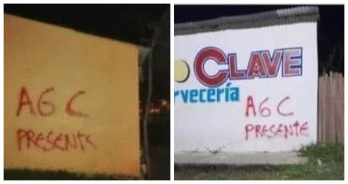 Los grafitis están escritos con letras rojas y hacen alusión a las 'autodefensas gaitanistas de Colombia' (AGC) y su mensaje advierte que “están presente en el Magdalena”.