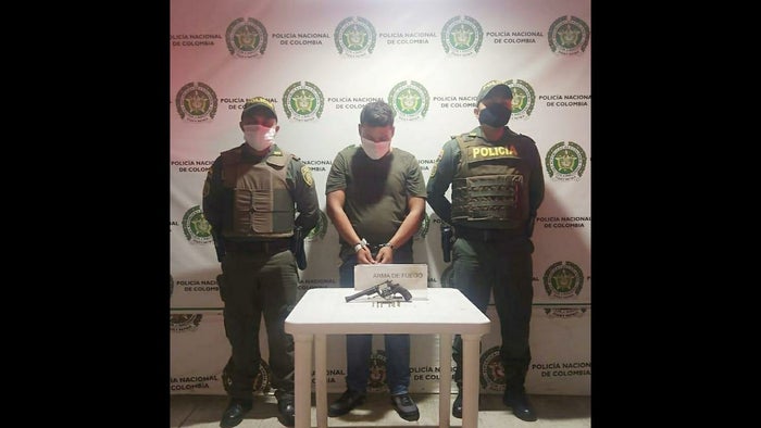 El sujeto en mención es identificado como Elkin Verdugo Blanco, quien debió se trasladado a un centro asistencial para verificar su estado físico, brindándole los primero auxilios y posteriormente dejado a disposición de la Fiscalía General de la Nación para que responda por el delito de tráfico, fabricación, porte o tenencia de armas de fuego, accesorios, partes o municiones.