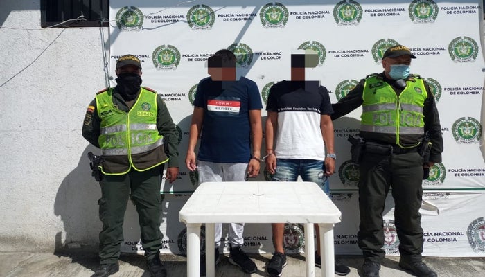 Añade la fuerza armada "Es importante resaltar que estos capturados presentan un alto prontuario delincuencial el primer sujeto de 22 años había sido capturado por Hurto calificado en el 2018, y Fabricación, tráfico y/o porte de armas de fuego en el 2020 y el otro sujeto de 30 años, ha sido capturado por hurto calificado en agosto, julio y febrero, del presente año, igualmente por hurto en menor cuantía en septiembre del 2018, trafico, fabricación o porte de estupefacientes en junio del 2011 y en octubre del 2016 así mismo por abuso de confianza en agosto del 2020".