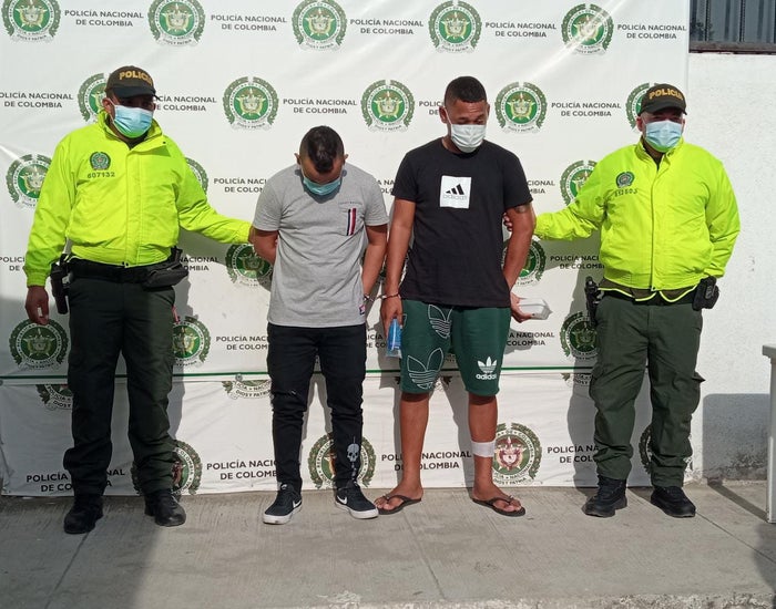 Los hombres fueron identificados como Jesús David Montes Saumett, alias 'Jesu' y Yair Enrique Mejía González, alias 'Chapir', sindicados de los delitos de homicidio agravado, fabricación, tráfico y porte de armas de fuego o municiones.