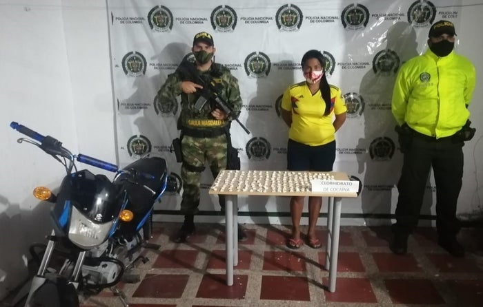 El procedimiento se registró en el municipio de Fundación, donde funcionarios de la Seccional de Investigación Criminal e Inteligencia Policial en acción conjunta con el Gaula Militar, recibieron la información que en el barrio Las Delicias de este municipio se encontraba una mujer transitando en motocicleta, vistiendo una camiseta amarilla de la selección Colombia, que al parecer estaba distribuyendo estupefacientes.