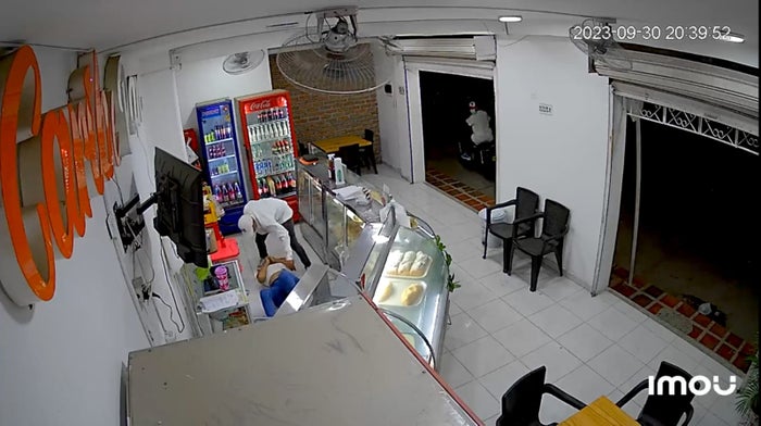 Un asaltante en Santa Marta, hurtó y agredió a una mujer que trabaja en una panadería, el hecho quedó captado por las cámaras de seguridad del establecimiento, donde se observa a dos hombres llegar al sitio en una motocicleta, y el sujeto que iba en el vehículo como parrillero, se bajó e ingresó hasta el local.