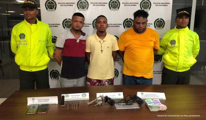 Mediante orden judicial, los hoy involucrados fueron capturados en allanamientos realizados por la Policía Nacional en los barrios La Esperanza y 7 de Agosto de la capital de Bolívar. Durante las diligencias, les fueron incautados dos revólver Llama, un proveedor, ocho cartuchos calibre 7.65, 12 cartuchos calibre 38 y 15 millones de pesos en efectivo.
