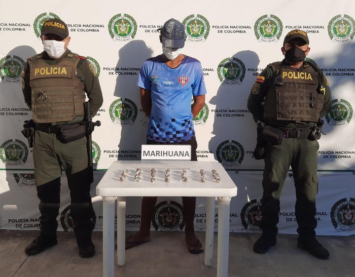 "En labores de patrullaje, nuestros hombres sorprenden a un sujeto expendiendo alucinógenos a la orilla del río Manzanares, luego de registrarlo se le encuentra una cantidad de marihuana la cual se encontraba dosificada y lista para su venta", señaló el coronel Óscar Favían Solarte Castillo, comandante de la Policía Metropolitana de Santa Marta.