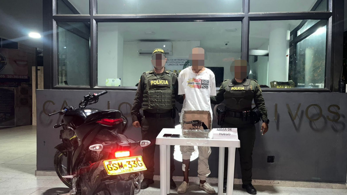 Durante el procedimiento, se incautó un revólver calibre 38 con cinco cartuchos, tres de ellos percutidos. También se decomisó una motocicleta con placas GSM 33G y dos teléfonos celulares avaluados en más de tres millones de pesos.