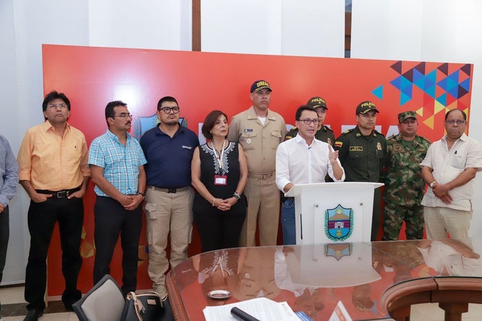 Se declara la calamidad pública y medidas restrictivas de circulación el toque de queda entre el 17 y el 30 de marzo desde las 8:00 de la noche hasta las 4:00 de la mañana; lo que buscamos es que se afecte lo menos posible la vida y el normal desarrollo de las actividades de la población, con el toque de queda estarán clausuradas las actividades de vida nocturna en establecimientos de comercio; también recomendamos el cierre de playas en municipios costeros”, afirmó el gobernador Caicedo Omar.