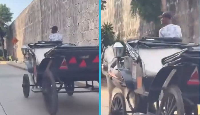En las imágenes, compartidas por la cuenta “Colombia Oscura” en X, se ve un carruaje en malas condiciones, con una llanta tambaleando que ponía en riesgo tanto a los turistas como al caballo que lo arrastraba.