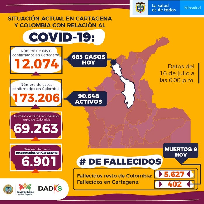 Alcaldía de Cartagena Hoy jueves 16 de julio, el Ministerio de Salud reportó nada más y nada menos la cifra records de 683 pacientes nuevos de Coronavirus en la ciudad, por lo que la cifra de infectados ascendió a 12.086.