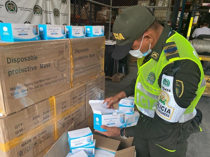 Para las autoridades, "Es importante destacar que estos tapabocas, transportados en un vehículo de encomiendas, carecían de etiquetas con descripción de datos de origen e importador para Colombia".