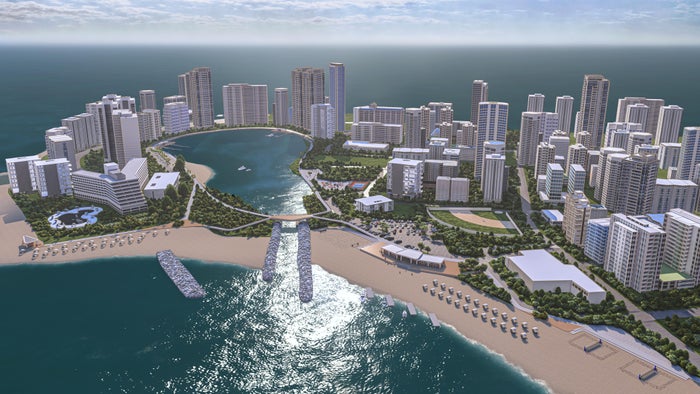 La primera fase del proyecto incluye la construcción de más de 960 metros de senderos peatonales, tanto a nivel como en voladizo, así como la adecuación de un parque infantil, zonas biosaludables, canchas de fútbol y vóley playa.