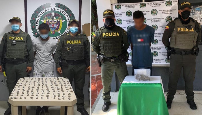 Foto//Policía Metropolitana de Cartagena Presuntos expendedores de alucinógenos