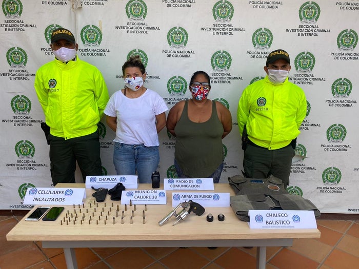 Las detenidas fueron identificadas como Sandra Marcela De La Ossa Fernández, de 30 años y Albertina Ayola Orozco, de 44, quienes fueron dejadas a disposición de la Fiscalía General de la Nación, junto con el arma de fuego y los demás elementos incautados y se encuentra a la espera de definir su situación judicial.