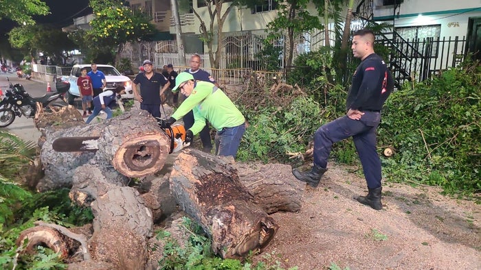 En el lugar de los hechos, Álex Viloria, coordinador de Arbolado del EPA Cartagena informó que: “El árbol estaba frondoso y tenía las ramas verdes, por eso la comunidad no sospechó que estuviera enfermo, pero cuando realizamos el troceado del tronco estaba hueco”.