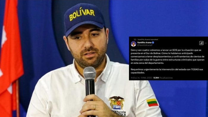 Desde mediados de enero 2025, las autoridades en el departamento de Bolívar se han pronunciado frente al aumento de enfrentamientos entre grupos armados, por la disputa del territorio. El gobernador de Bolívar, Yamil Arana Padauí, ha utilizado sus redes sociales para realizar un nuevo llamado al gobierno nacional, destacando que aunque la situación en el departamento no es de la misma magnitud como sucede en otras partes del país, sí considera necesario el refuerzo de las estrategias, argumentando el crecimiento de familias desplazadas, que según reportes, asciende a 170.