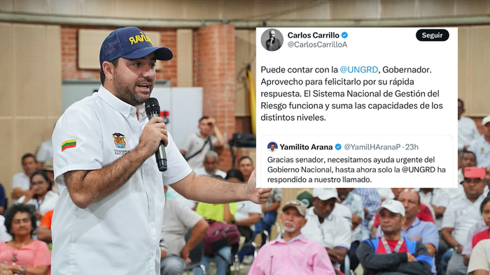 El director de la Unidad Nacional de Gestión de Riesgo de Desastres (UNGRD), Carlos Alberto Carrillo Arenas, felicitó en su cuenta de X al gobernador de Bolívar, Yamil Arana Padauí, por la pronta atención que puso en marcha junto a su equipo de trabajo para enfrentar la emergencia ocurrida en el municipio de Montecristo, que afectó a esa comunidad.
