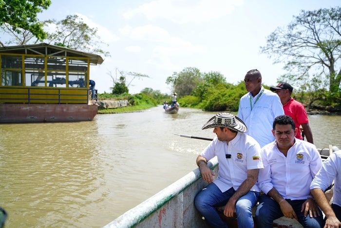 Acompañando al gobernador de Bolívar en su recorrido por Lomas de Matunilla estuvieron Cristian Herazo, director de Ambiente de la Gobernación, Eliana Romero Valiente, gerente encargada de Aguas de Bolívar y el alcalde de Tubana, Maicol Olascuaga.