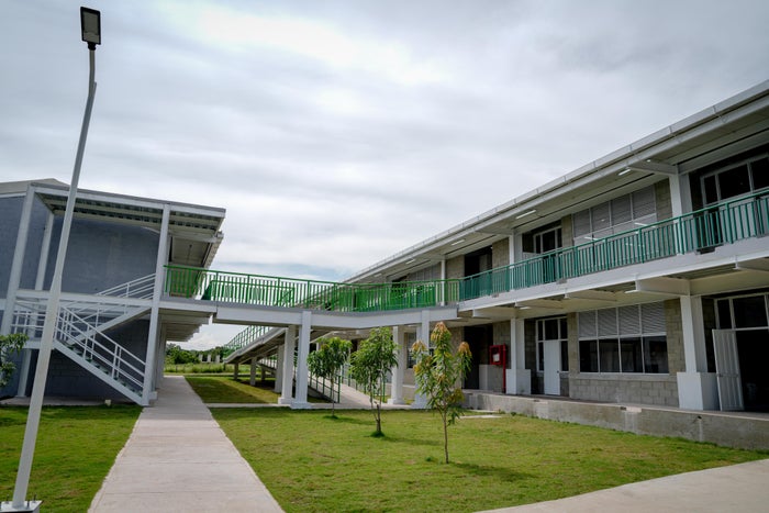La moderna infraestructura cuenta con 24 aulas, un coliseo cubierto, salones de laboratorios, salones de informática y talleres.