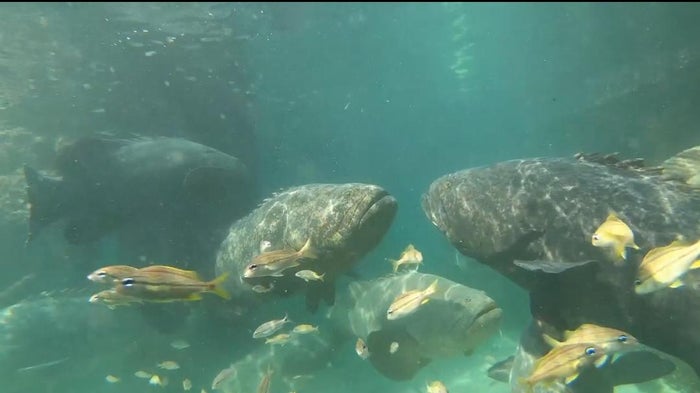 “El mero guasa es un animal que puede crecer hasta tres metros y puede vivir hasta 40 años, y es uno de los grandes carnívoros de nuestro mar, inclusive es el segundo mero más grande del mundo. Esta especie es importante para el país porque es una especie que está amenazada, porque en sus poblaciones naturales está en unos números muy bajitos”, dijo Jaime Rojas, director científico del Oceanario de Islas del Rosario.