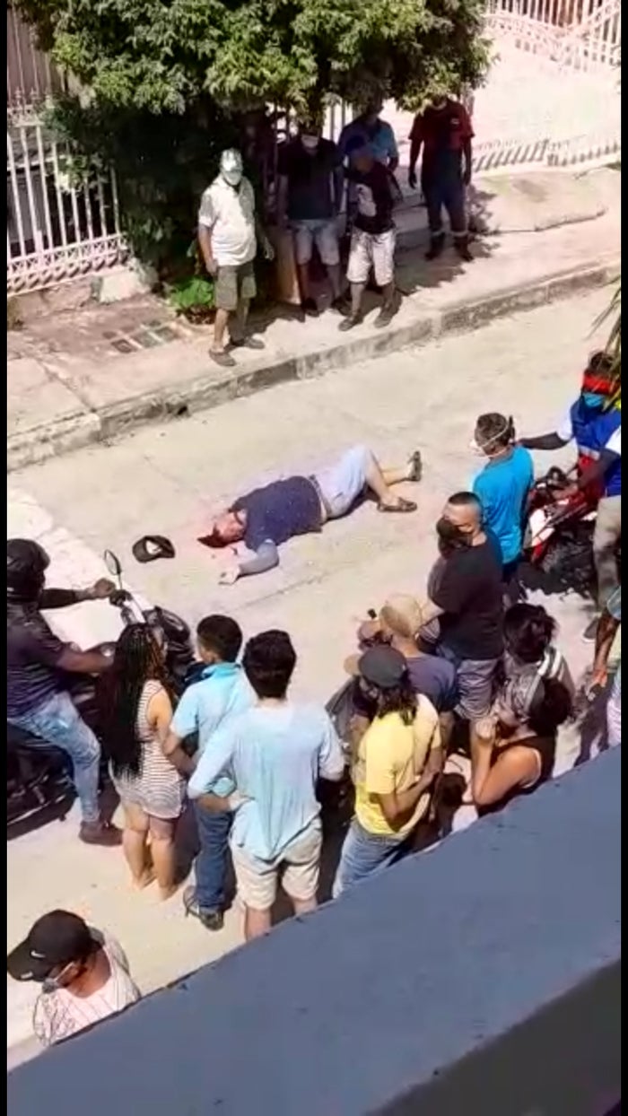 Habitantes de la calle Colombia del barrio El Carmelo, una vez sintieron el movimiento extraño en su vecindario salieron de sus casas después de escuchar los disparos, y el ruido de una motocicleta que al parecer perseguía al hombre quien quedó tendido en medio de la vía y muy mal herido.
