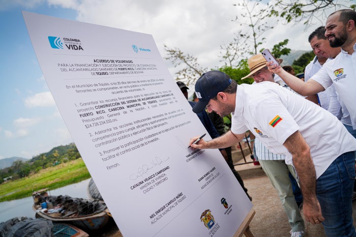 Este sábado, el gobernador de Bolívar, Yamil Arana, rubricó un Acuerdo de Voluntades con la Ministra de Vivienda, Ciudad y Territorio, Catalina Velasco Campuzano, consolidando así la financiación y ejecución del esperado alcantarillado en el municipio de Tiquisio.