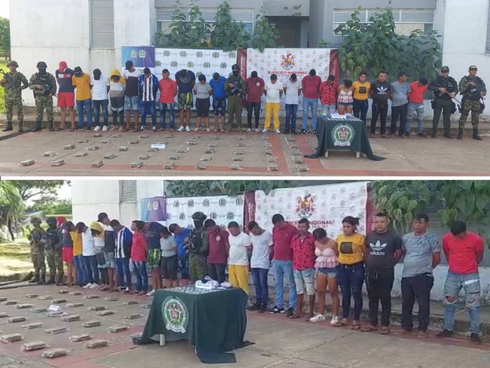 Se les incautó 22.500 gramos de marihuana y base de coca, avaluados en 54 millones de pesos. Además, 4 teléfonos celulares como elemento material probatorio