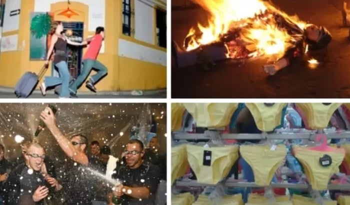 8. Quemar el año viejo, con el fin de dejar todo atrás y dar paso a nuevos comienzos se suele hacer un año viejo, el cual se trata de un muñeco de trapo vestido con prendas usadas, gastadas y viejas que se quema el 31 de diciembre. Algunas personas se inspiran en famosos y le colocan hasta nombres específicos.