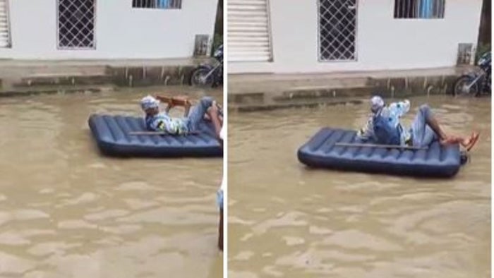 Para algunos ha sido impedimento para salir a cumplir con la jornada electoral que sucede en todo el país, pero por el contrario para otros ha sido el momento propio para ingeniárselas para salir a votar. En un video que circula en redes sociales quedo registrado la curiosa manera en que un hombre llega a su puesto de votación montado sobre un colchón inflable como si fuese una canoa.