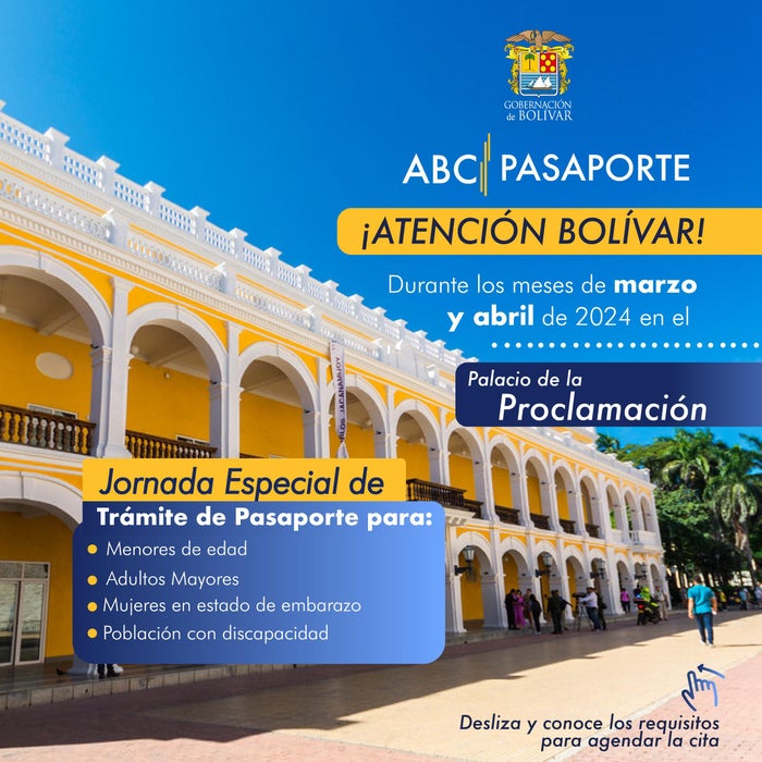 Para participar en esta jornada, los interesados deberán enviar un correo electrónico a citaspasaporte@bolivar.gov.co, suministrando la siguiente información: nombre completo, documento de identidad y número de contacto.