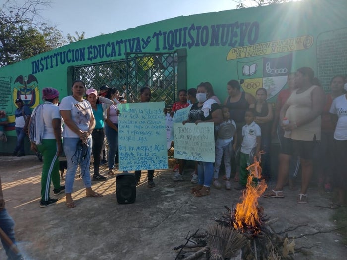 Más 600 estudiantes no han iniciado sus clases en el municipio Tiquisio Nuevo, sur de Bolívar. Los padres de familia, alumnos y directivos, realizaron una protesta, porque denuncian que no cuentan con la infraestructura física que garantice la seguridad de los menores y que tampoco tienen profesores.