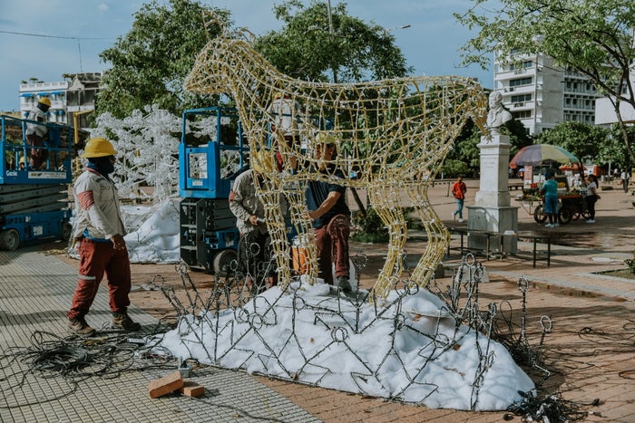 "Serán 70 kilómetros de manguera LED y más de 3 mil bombillos los que iluminarán las noches de Cartagena durante los meses de diciembre y parte de enero, con más de 2.050 figuras decorativas instaladas en barrios, calles, plazas, monumentos históricos y sitios emblemáticos del Distrito", mencionó el alcalde de Cartagena, William Dau Chamat.