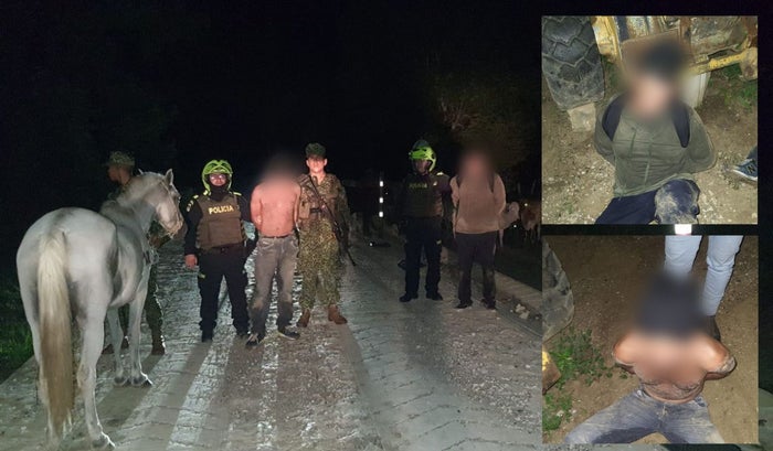 Precisamente, tres patrullas en articulación con la Infantería de Marina llegaron hasta la finca Los Playones ubicada en el corregimiento Robles jurisdicción de El Guamo, se encontraron dos sujetos, uno que iba caminando desesperadamente tratando de perderse de las autoridades y otro que iba montado sobre un caballo harreando una docena de semovientes machos que minutos antes había extraído de la finca.
