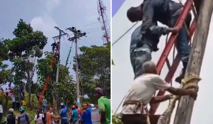 Ovidio Ayola, un electricista de ese municipio, al percatarse de lo sucedido, llegó al lugar de los hechos con sus herramientas, y fue quien logró bajar a la víctima del poste con la ayuda del compañero de trabajo.