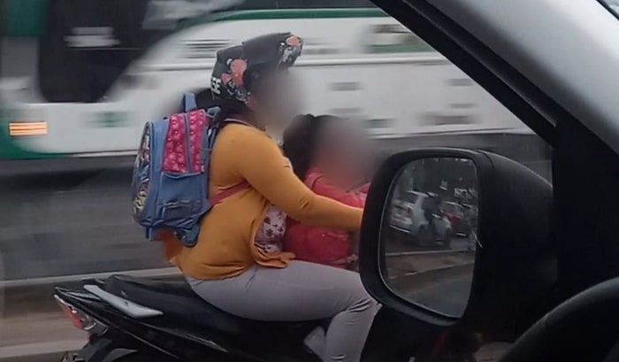 Por ejemplo, entre el CAI de Ceballos sobre la Transversal 54, hasta llegar a la Bomba del Amparo, encontramos a varios mototaxistas con parrilleros, incluso, a una mujer que llevaba a una menor de edad en la parte delantera de su moto, exponiendo su integridad física.