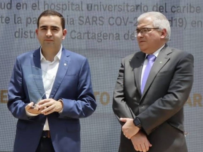 “Lo más importante en la significación de este premio, es que salvamos cientos de vidas por la emergencia sanitaria y reconstruimos de más de 3400 metros cuadrados, recuperando los pisos 9 y 10 del centro hospitalario más importante departamento de Bolívar, en un tiempo récord de 60 días, trabajando día y noche”, expresó Blel Scaff.