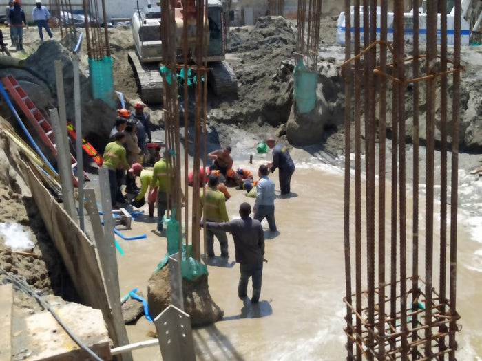 La rápida reacción de los organismos de socorro, Bomberos y Defensa Civil, quienes recibieron el aviso de una emergencia en una Construcción en Bocagrande, lograron sacar con vida a un obrero que había quedado atrapado en un pozo de lodo.