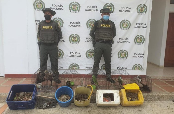 "Dentro de las especies rescatadas se encuentran 01 guacamaya polluelo, 03 tucanes polluelos, 02 tucanes adultos, 01 loro, 01 loro cheja, 01 gavilán pollero, 05 Tití cabeciblanco y 22 morrocoy. Desafortunadamente en muchos municipios de Bolívar, por cultura y costumbres aún se realiza la práctica de tener fauna silvestre en los hogares como mascotas, sobre todo aves y reptiles que son muy demandados y que fomentan el tráfico ilegal de fauna silvestre", dice la Policía.