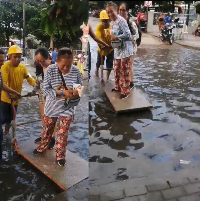 Especialmente, en Bocagrande, una de las zonas turísticas y más concurridas de la ciudad turistas quedaron atrapados en medio de las inundaciones y aguas negras que se desbordan en este sector del Distrito, a través de un video se puede como con una carretilla improvisada dos hombres intentan cruzar de un lado a otro a las personas y les cobran por ello.