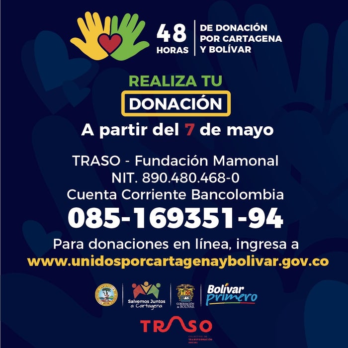 Todo se encuentra listo para la realización de la gran jornada de donación convocada por la Alcaldía de Cartagena, la Gobernación de Bolívar y el Colectivo Traso, que se realizará a partir del próximo jueves 07 de mayo para obtener recursos destinados a la atención de la emergencia por la pandemia del coronavirus.