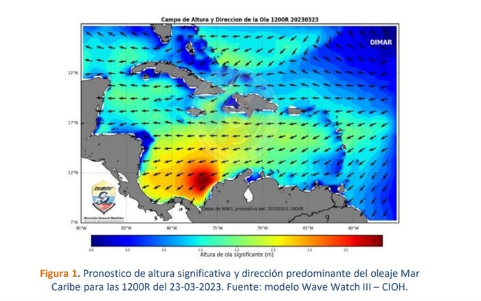 Según el capitán de Navío, José Andrés Díaz, Director del Centro de Investigaciones Oceanográficas e Hidrográficas del Caribe ya se adelantan las actividades marítimas adecuadas para este tipo de alertas, "permitimos informar que en la zona se presenta un sistema de alta presión subtropical del océano Atlántico (al norte) y otro de baja presión subtropical del Darién, lo que hace que hayan vientos alisios fuertes con dirección este noreste. Se prevé que este comportamiento se aumente durante las próximas horas, con presencia de vientos de 30 nudos y una altura en las olas de hasta 3,5 metros".